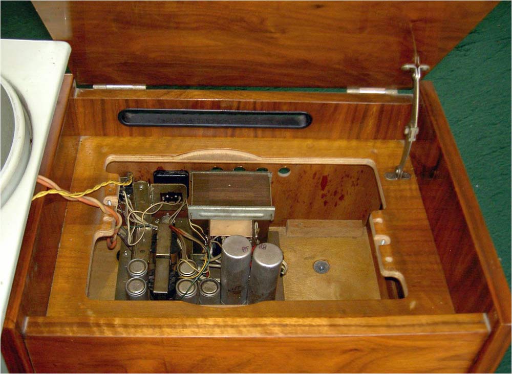рядом с приёмником, во втором над ним. Габариты радиолы 1-го варианта 1085х285х345