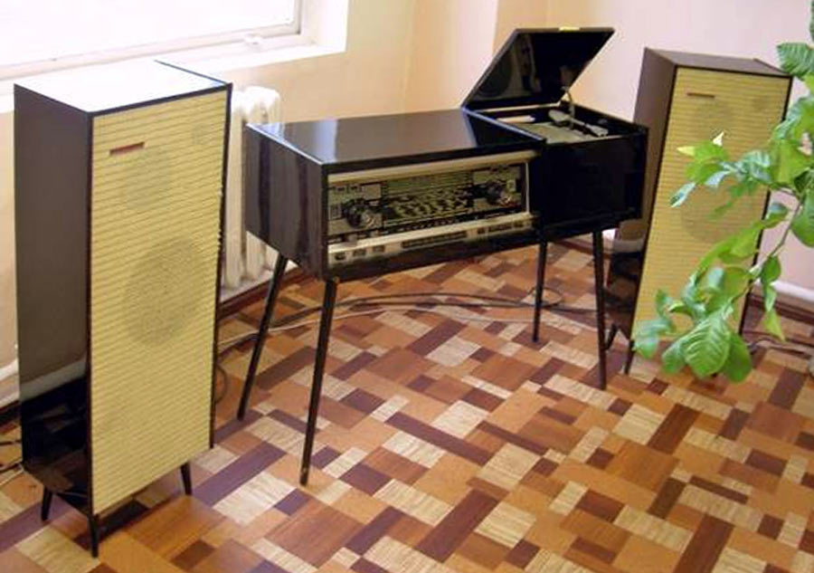 с четырёхскоростным стереофоническим ЭПУ в общем корпусе. Радиола работает