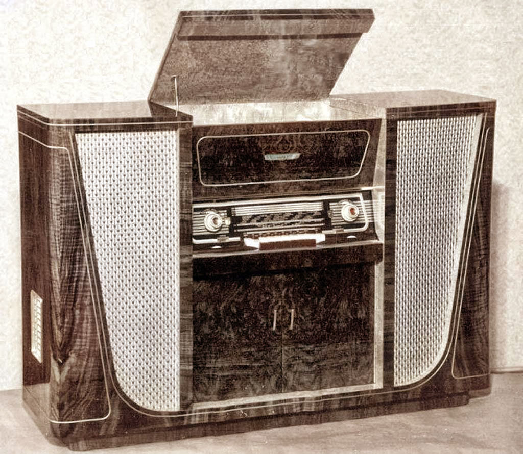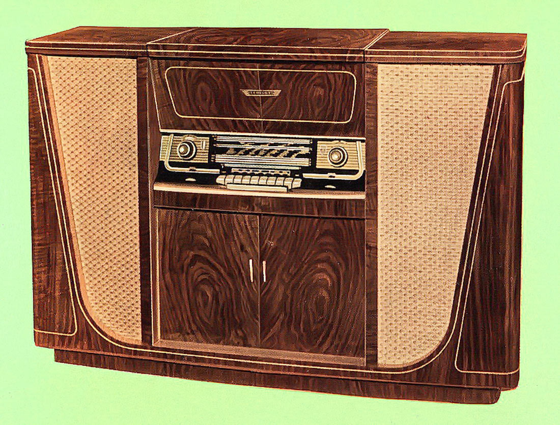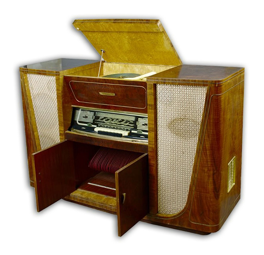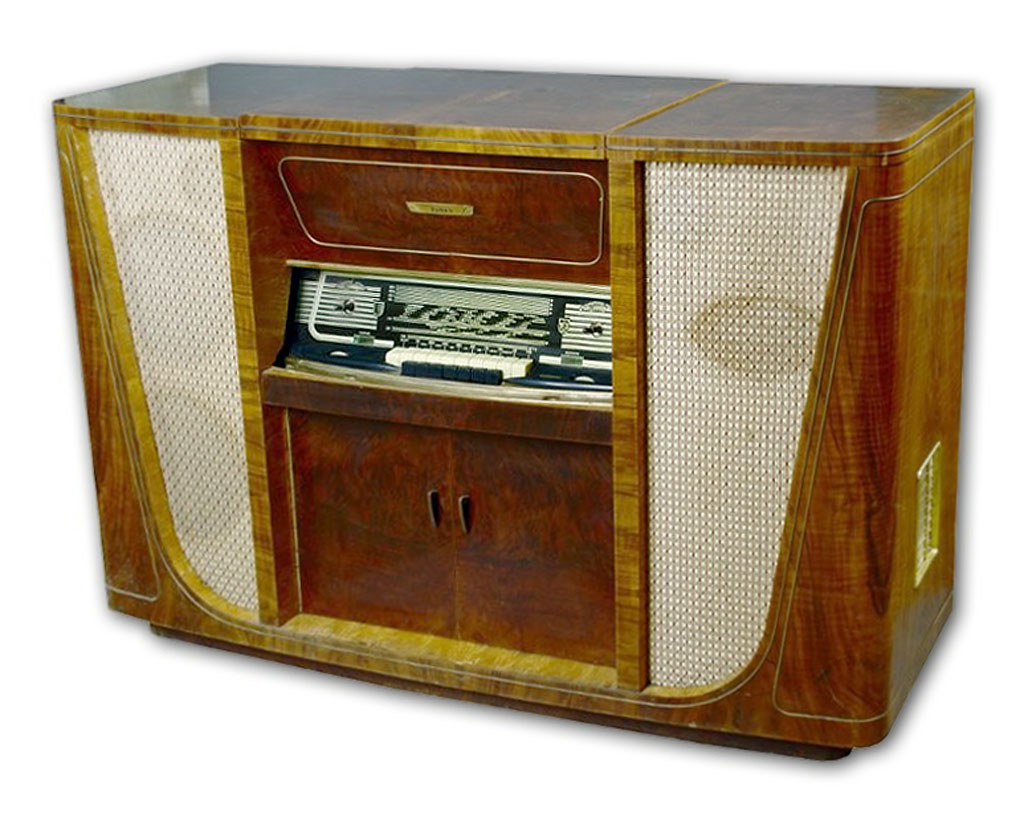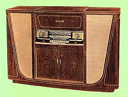 Радиола высшего класса построена на 15 лампах, приёмник имеет автоподстройку.