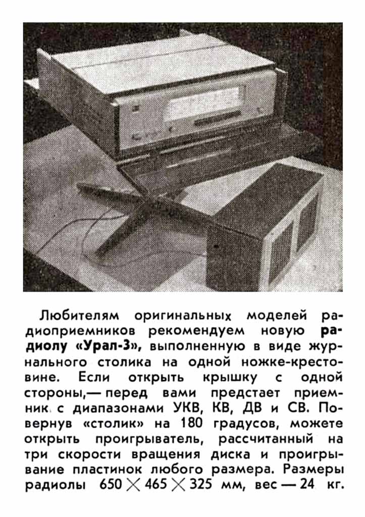 радиолу "Урал-3", выполненную в виде журнального столика на ножке крестовине.
