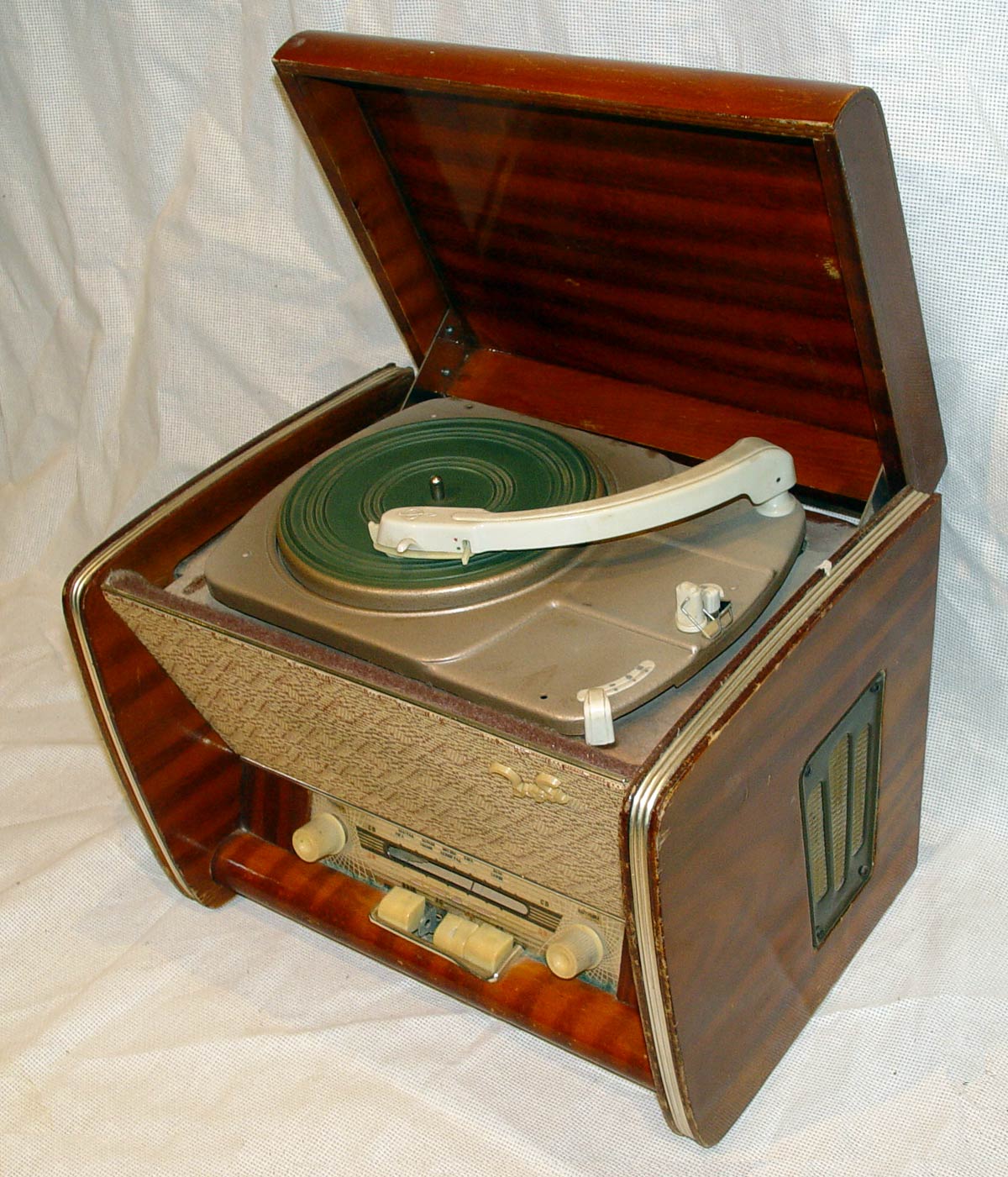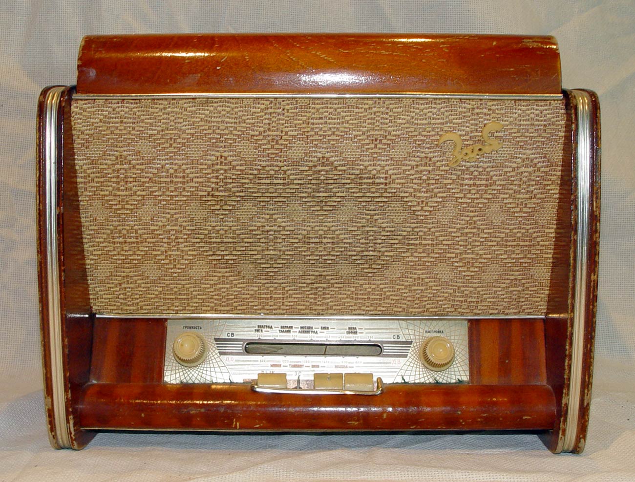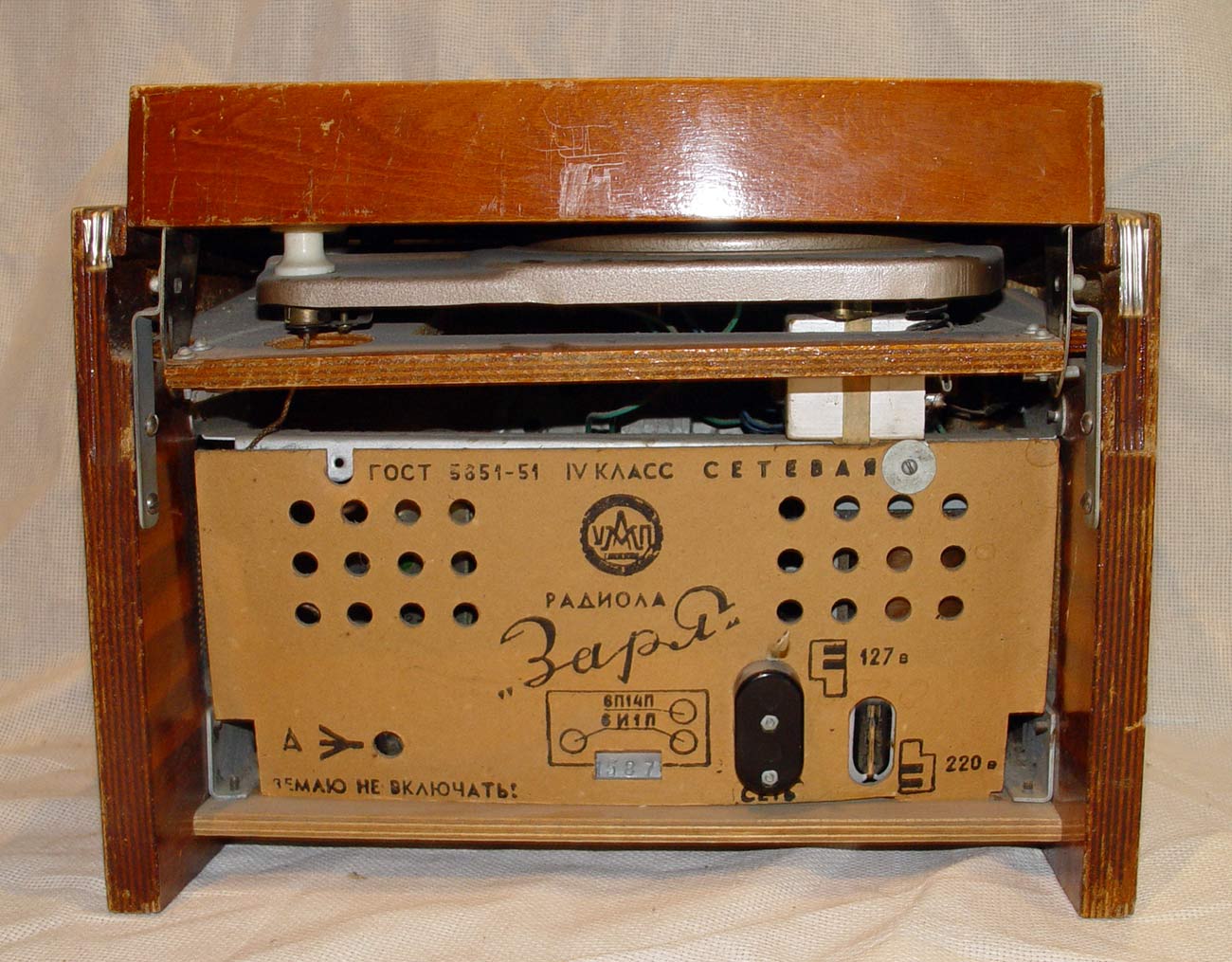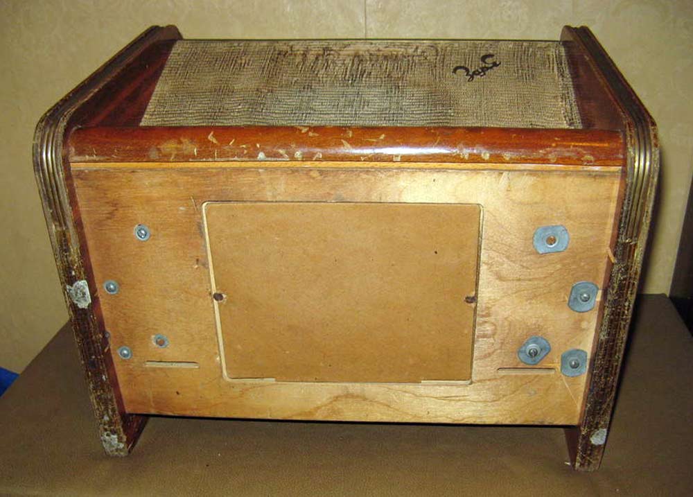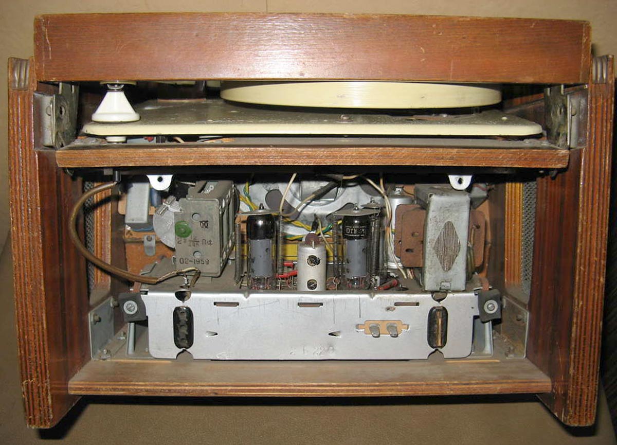 Радиола выполнена на базе приёмника ''Заря'' и кроме другого футляра и