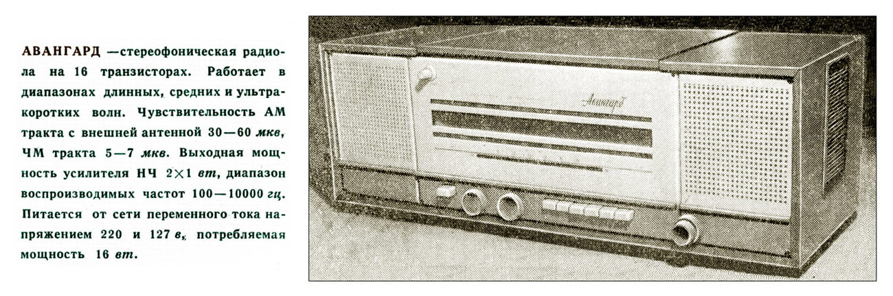 транзисторная радиола "Авангард" разработана в 1965 году в двух вариантах