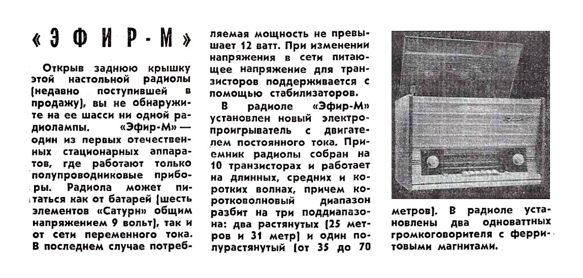 Последнее изображение небольшая заметка о радиоле "Эфир-М" в