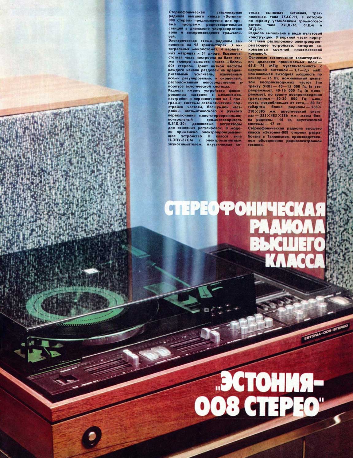 радиола высшего класса "Эстония-008-стерео" с 1979 года выпускалась Таллинским