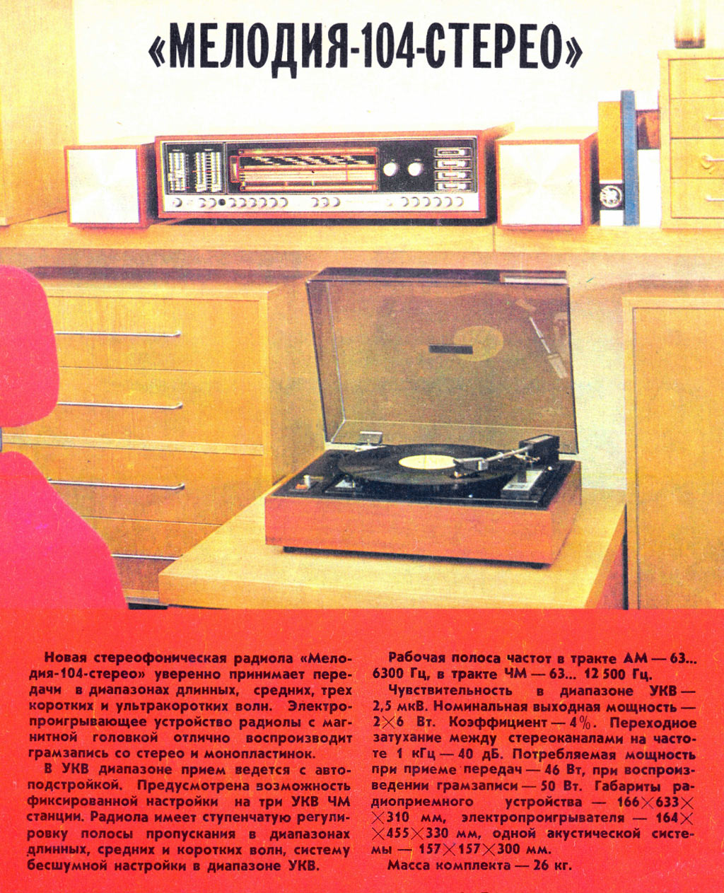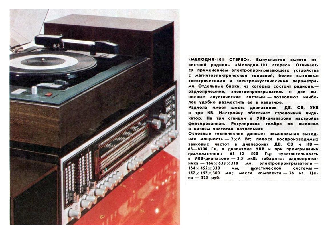 стереофоническая блочная радиола "Мелодия-104-стерео" с 1978 года выпускалась