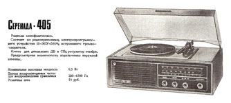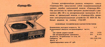 заводом "Радиоприбор". Монофоническая радиола 4-го класса ''Серенада-405''