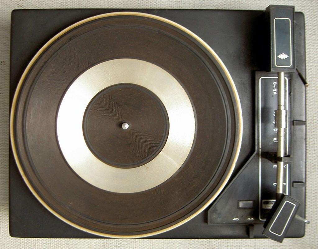 стрелочная индикация настройки на станцию. В радиоле используется четырёхскоростное