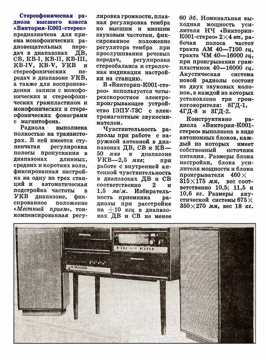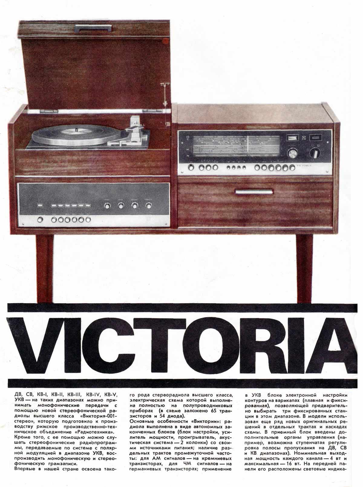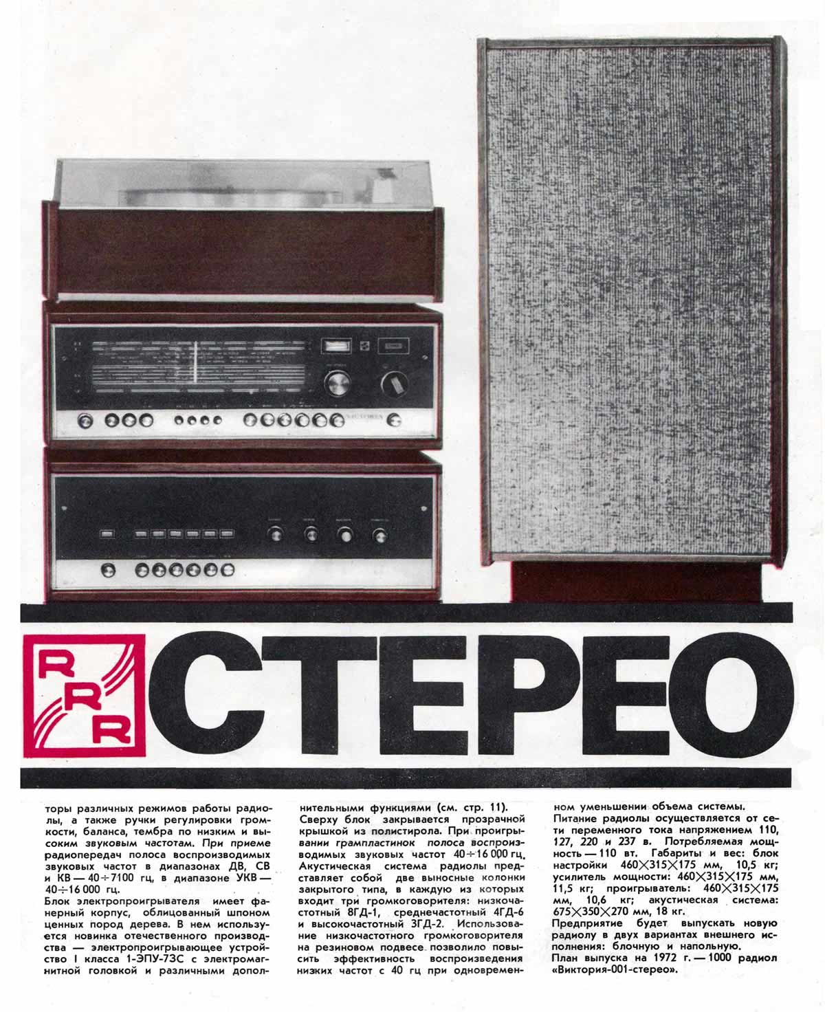 транзисторная радиола "Виктория-001-стерео" с осени 1972 года выпускалась