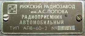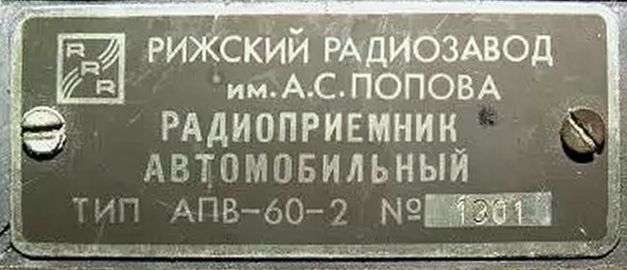 радиозавод им. А.С.Попова. Автомобильный приемник высшего класса ''АПВ-60''