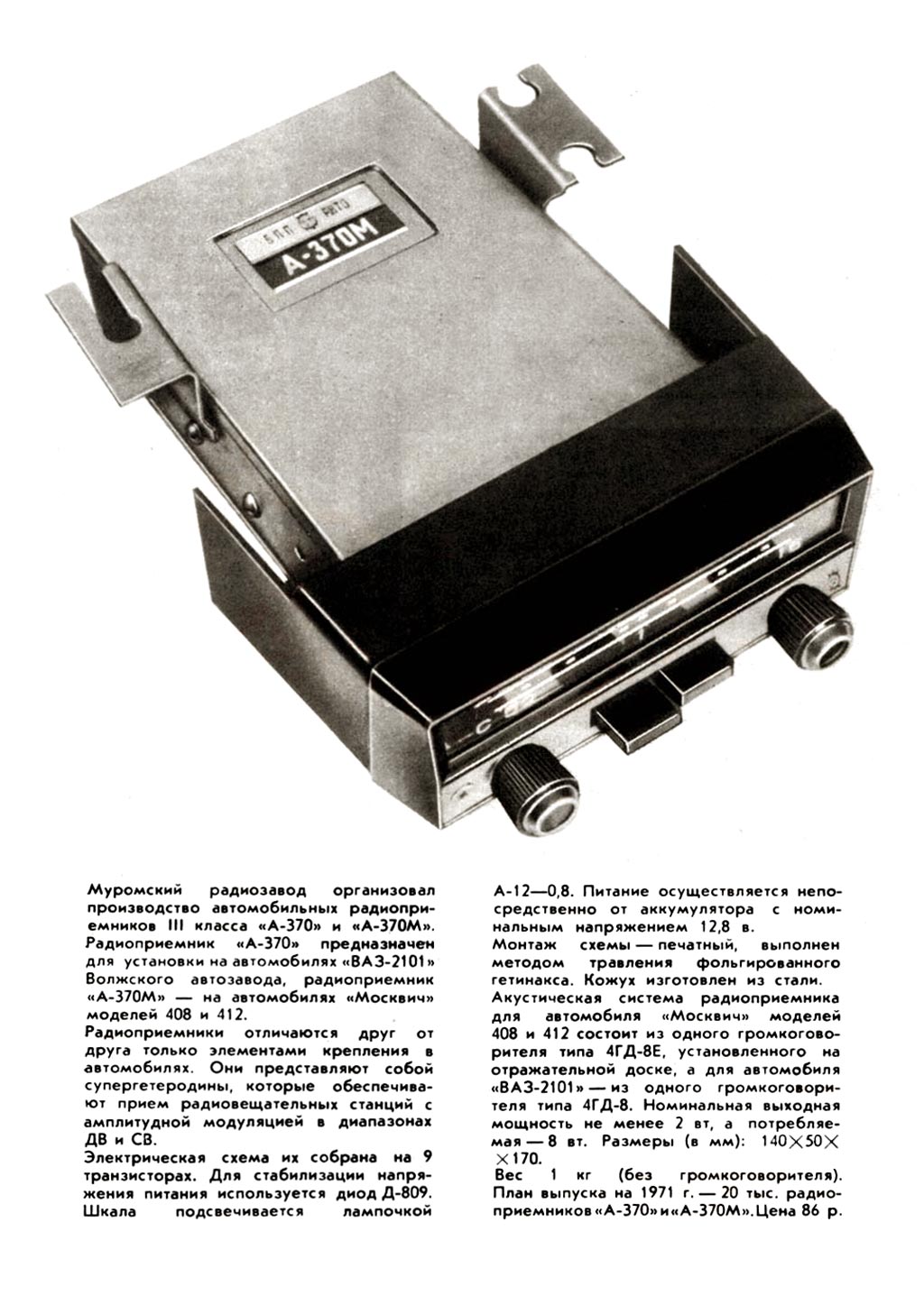 автомобильный радиоприёмник "А-370" с 1969 года выпускал Муромский радиозавод.