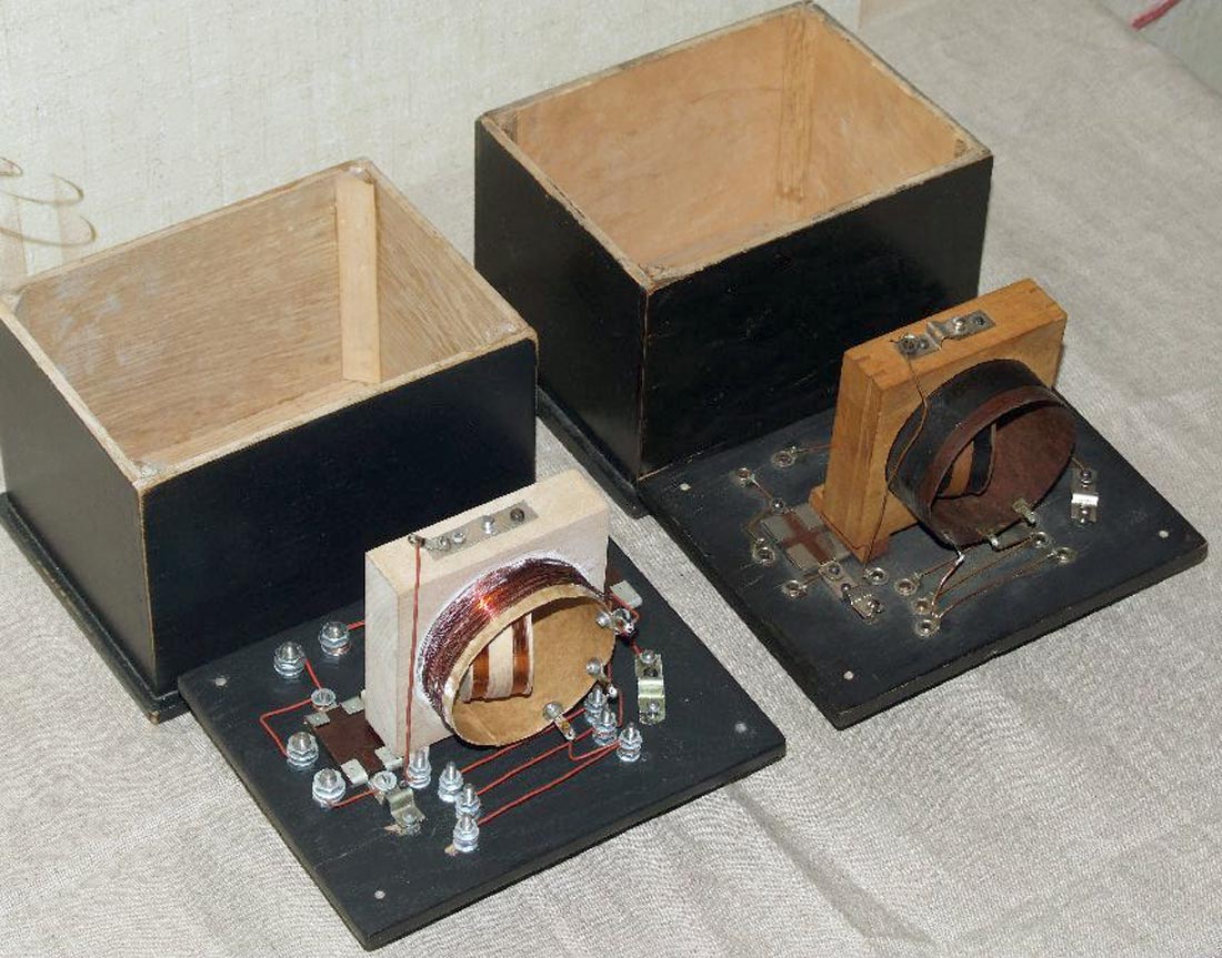 и пригородных детекторных установках. Собран приёмник в деревянном ящике