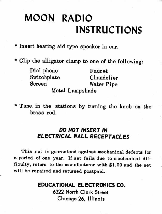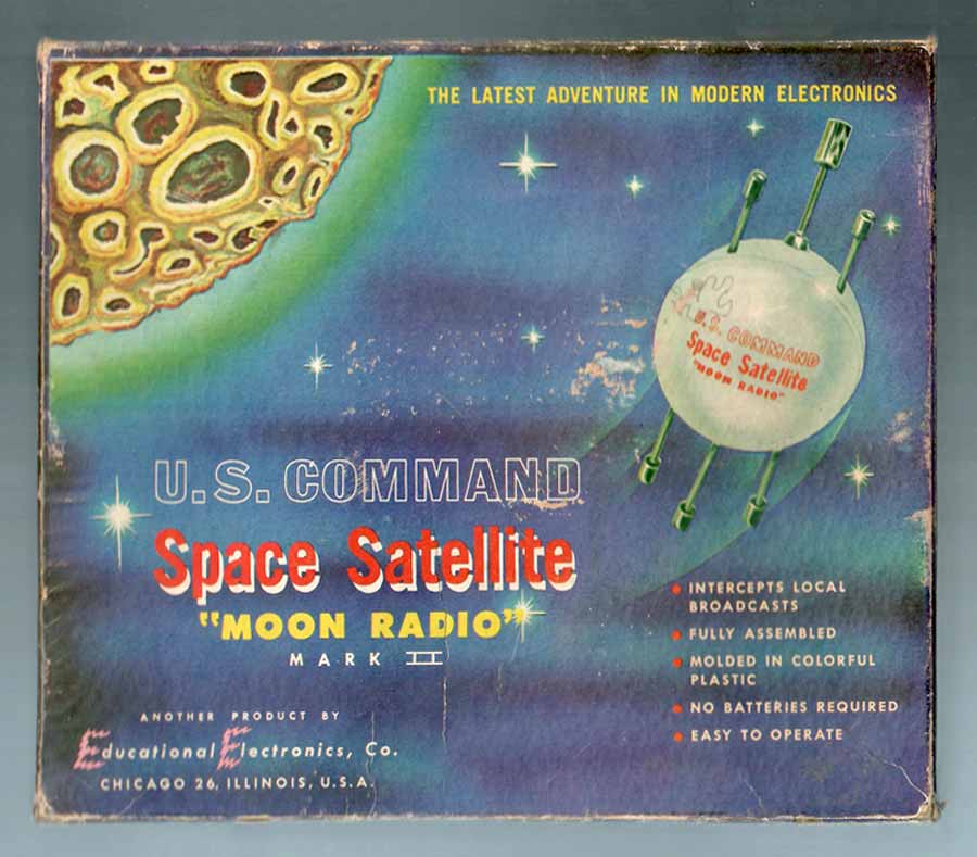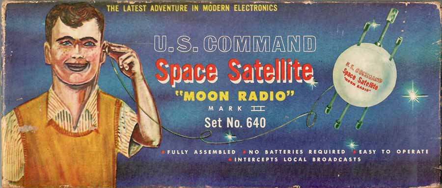 Детекторный радиоприёмник "U.S. Command Space Satellite Moon Radio" (Космический спутник "Луна Радио" распостранялся с 1960 года компанией "Educational Electronics" Чикаго, Иллинойс.