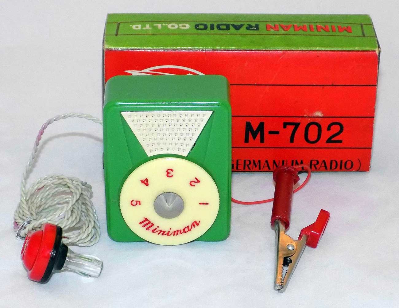 Карманный детекторный радиоприёмник "Miniman M-702" выпускался ~ с 1960 года компанией "Miniman Industry", Япония. Позволяет принимать радиостанции в диапазоне СВ, на расстоянии до 50 километров.