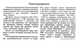 Батарейный радиоприёмник "Радиопередвижка" выпускал с 1927 года трест заводов малого тока. Информация о радиопередвижке в файле внизу.