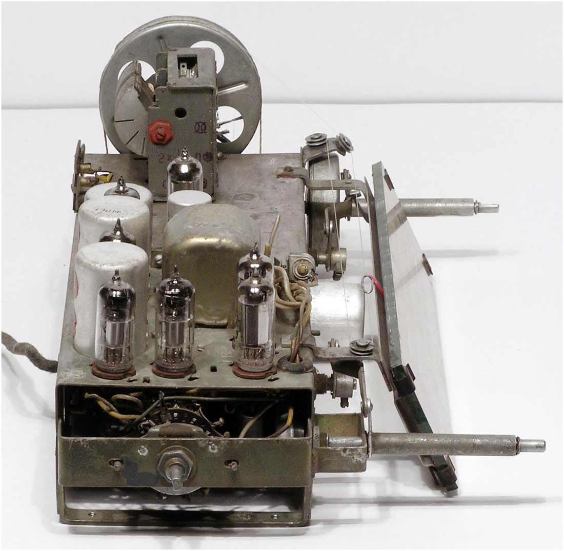 При работе звукоснимателя выключается накал ламп приёмной части, а выходной