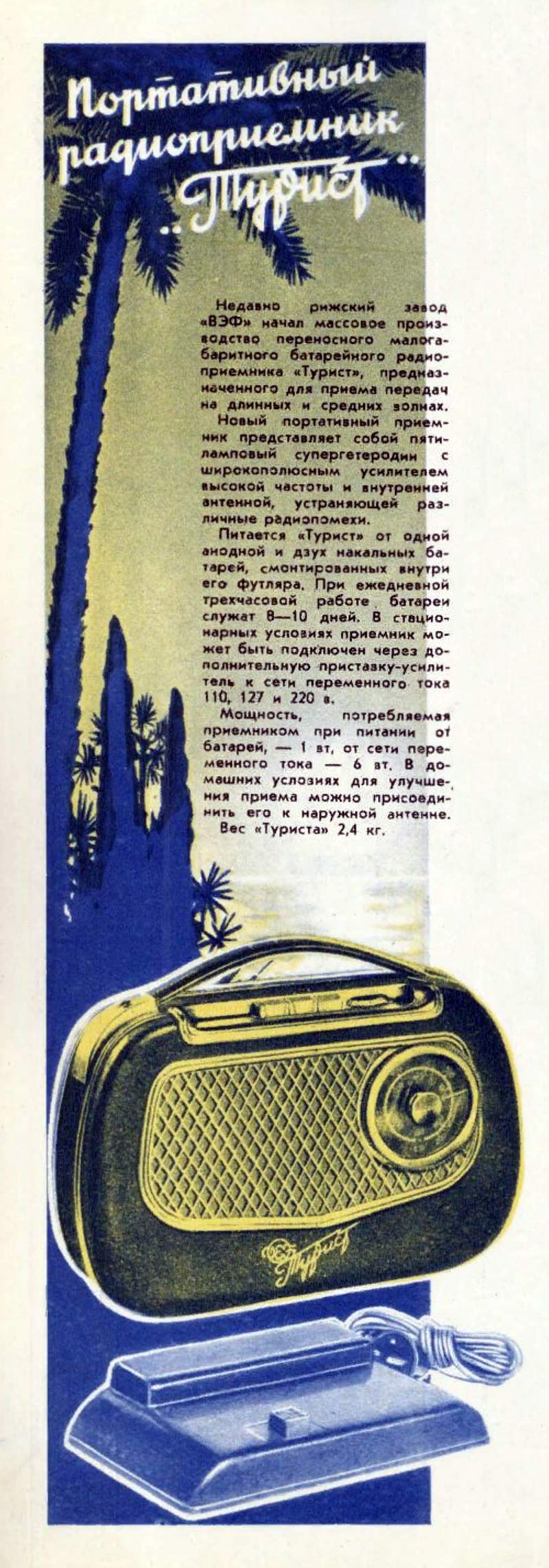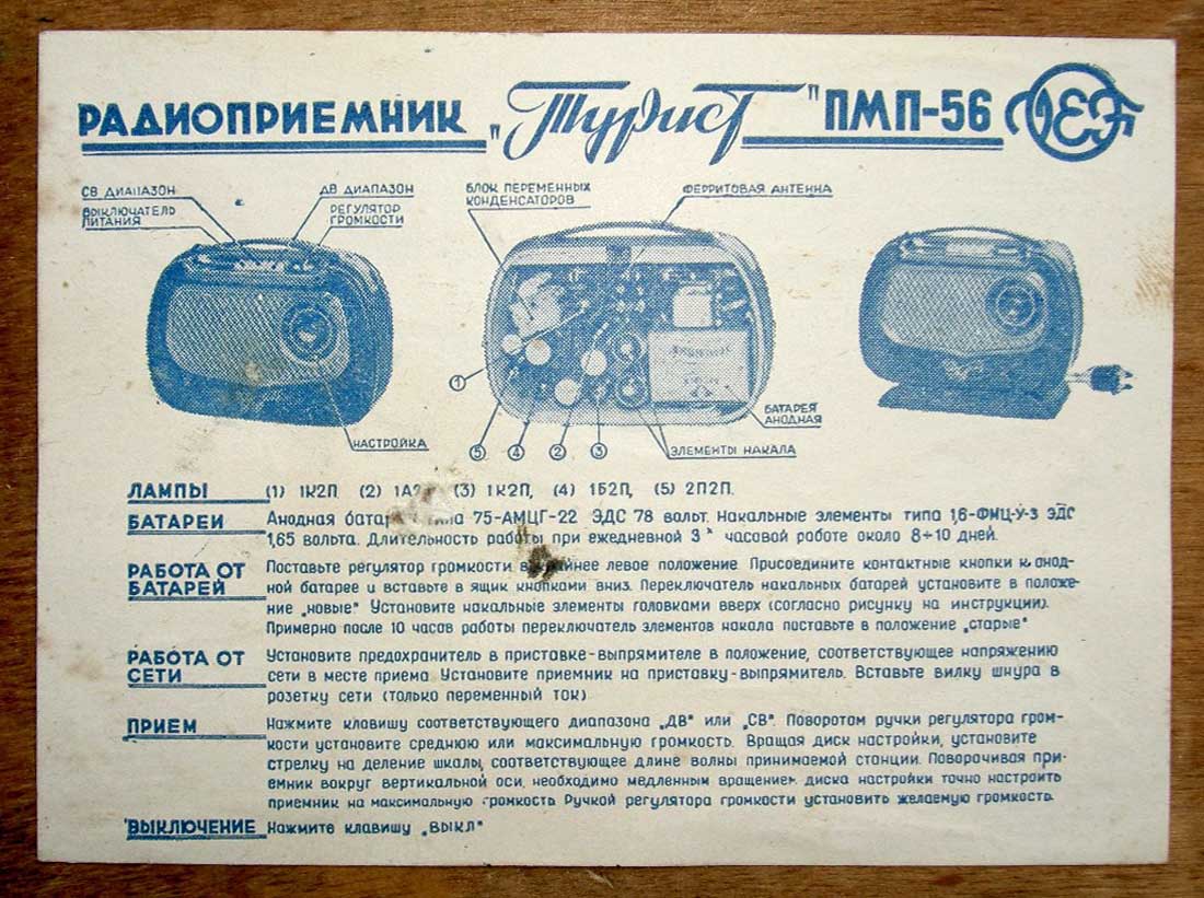 батарейный "Турист" с 1955 года выпускал Государственный союзный электротехнический