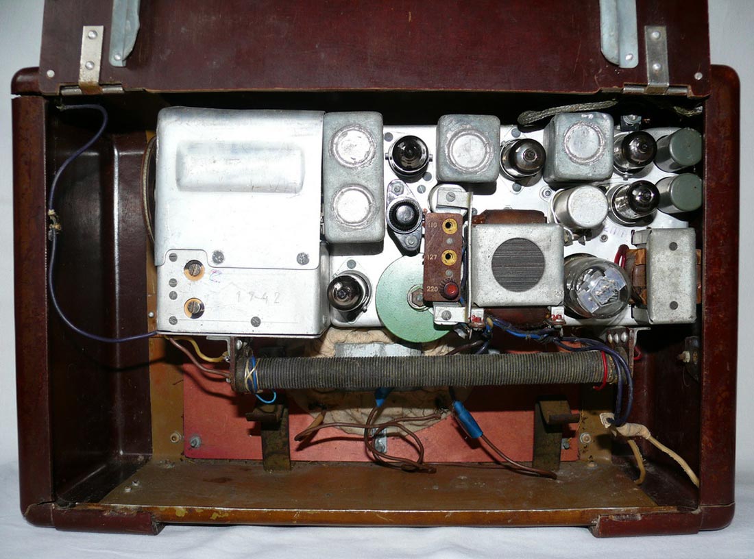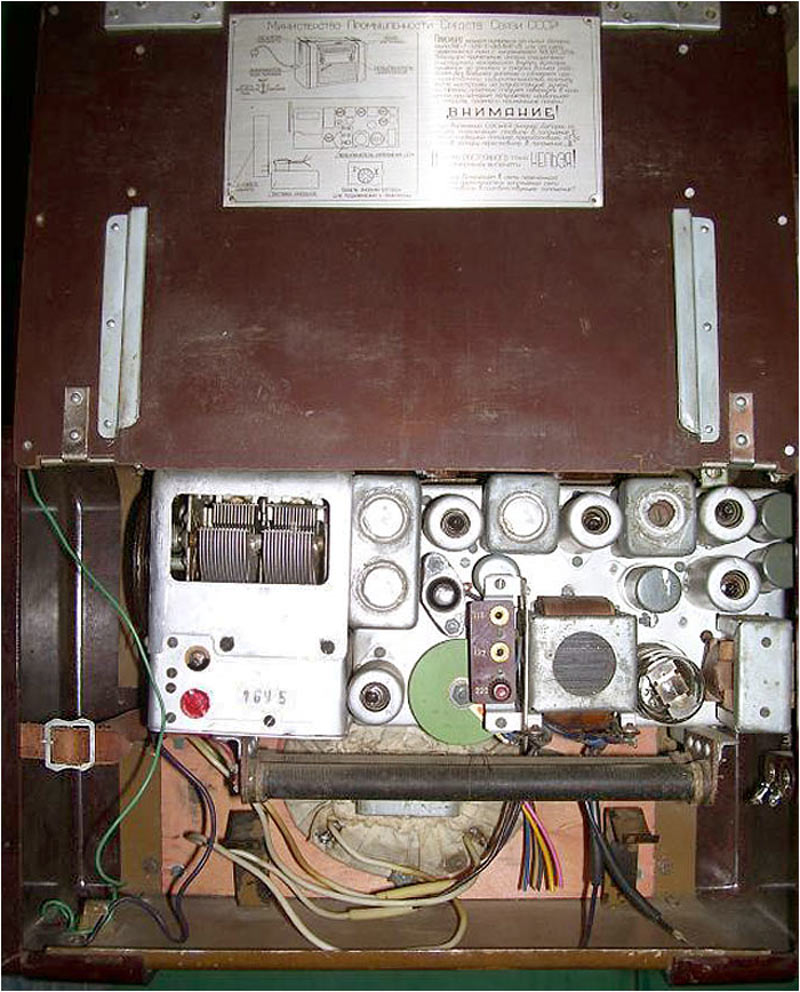 диапазонов расположены под шкалой. На задней стенке приёмника имеется дверца