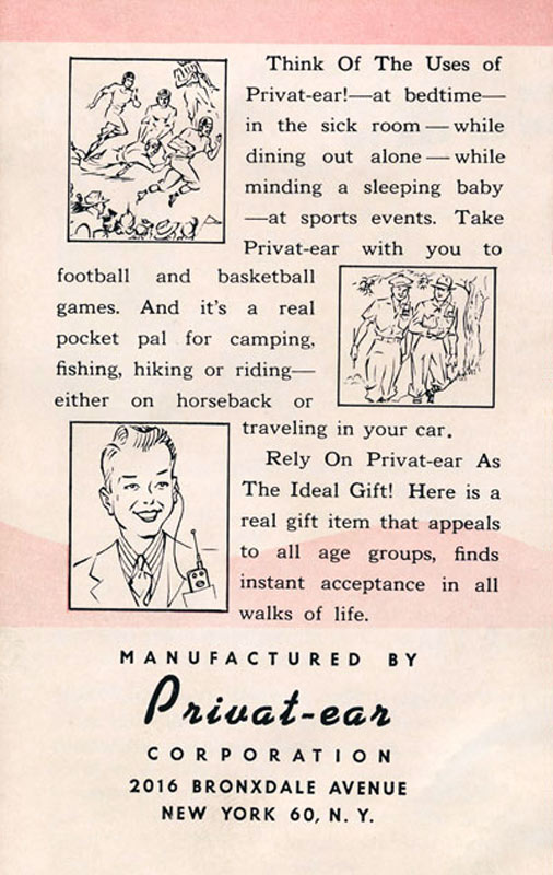 радиоприёмник "Privat-ear 5-DS-001" выпускался с 1949 года Американской