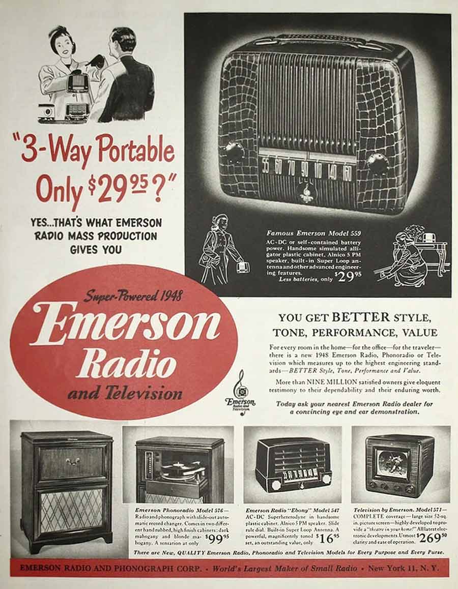 "Emerson-559" выпускался с 1947 года корпорацией "Emerson Radio and Phonograph