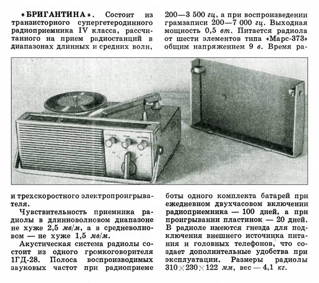 1969 года выпускалась Кыштымским радиозаводом. ''Бригантина'' - одна из