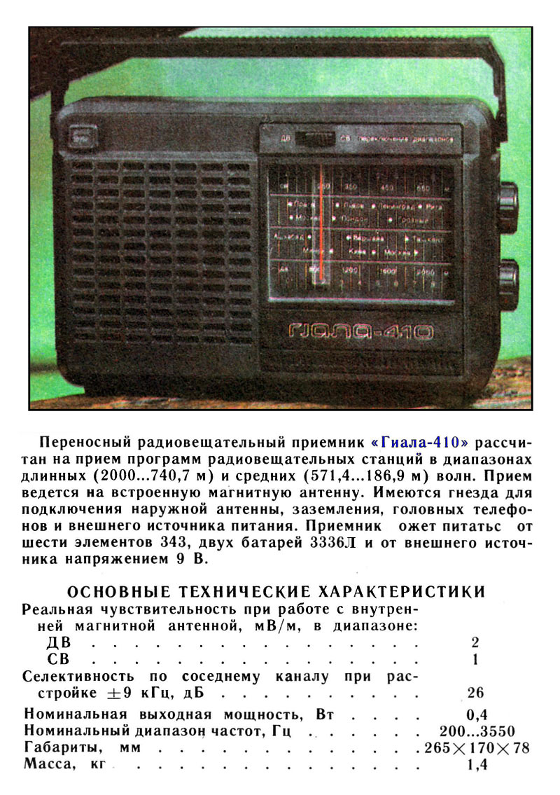 Описание и схема радиоприёмника "Гиала-410" в справочнике