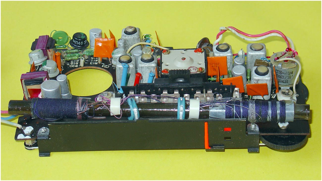 магнитную антенну. Модель собрана на семи транзисторах по супергетеродинной