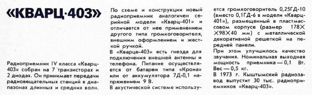выпускал Кыштымский радиозавод. Модель собрана базе радиоприёмника ''Сокол-403''