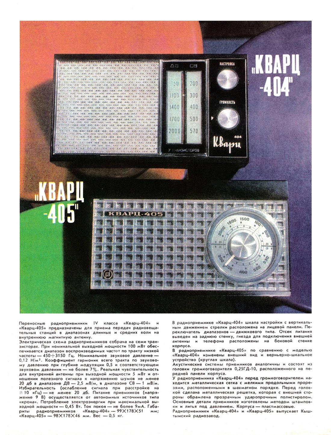 1974 года радиоприёмником ''Кварц-405'', при этом выпуск модели ''Кварц-404''