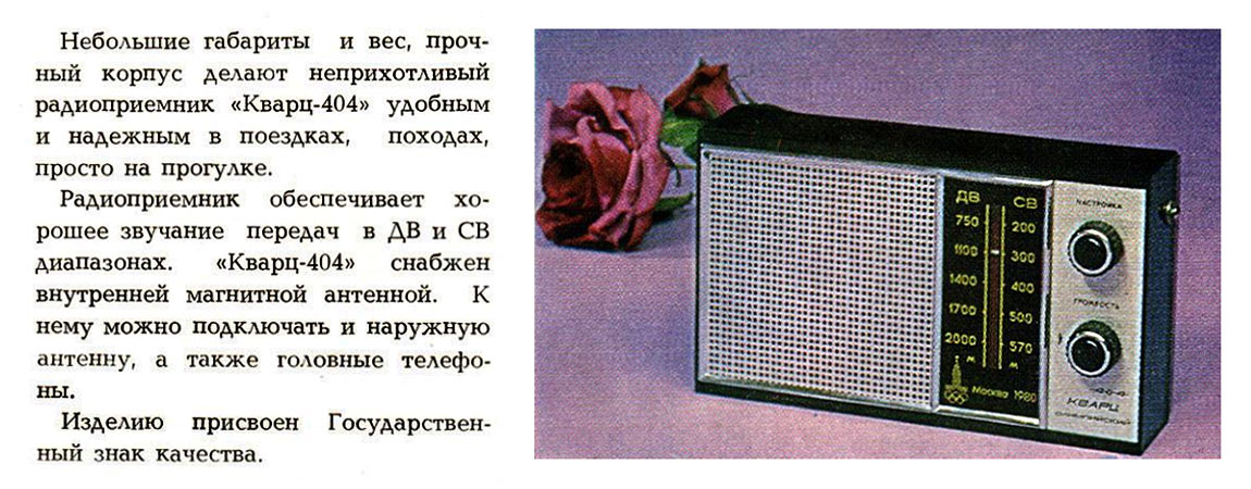 олимпийской символики он был модернизирован в приёмник ''Кварц-404М'',