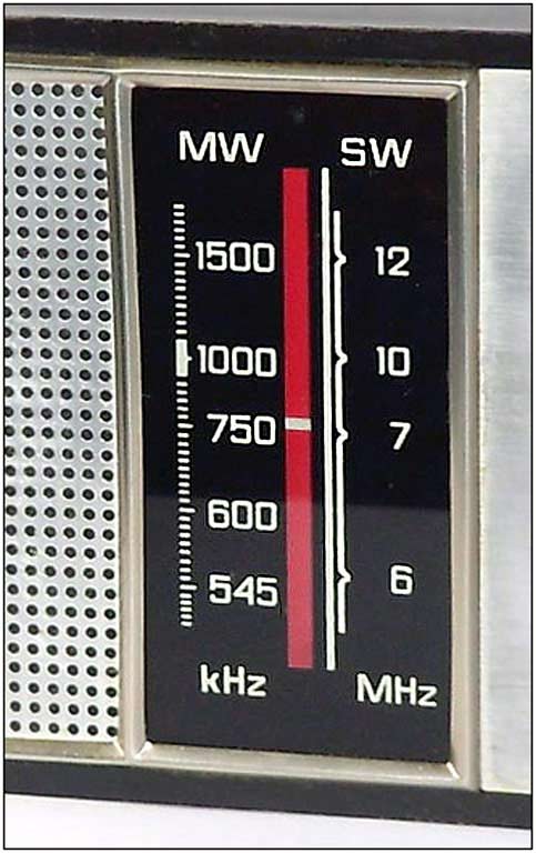 диапазонах СВ - 525...1605 кГц и КВ - 5,75...12,2 МГц. Приём в обоих диапазонах