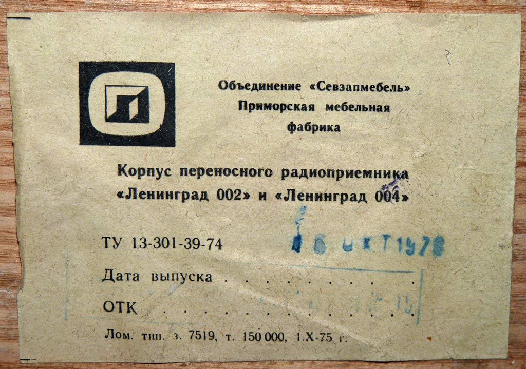 завод "Радиоприбор". Приёмник работает во всех диапазонах принятых ГОСТ.