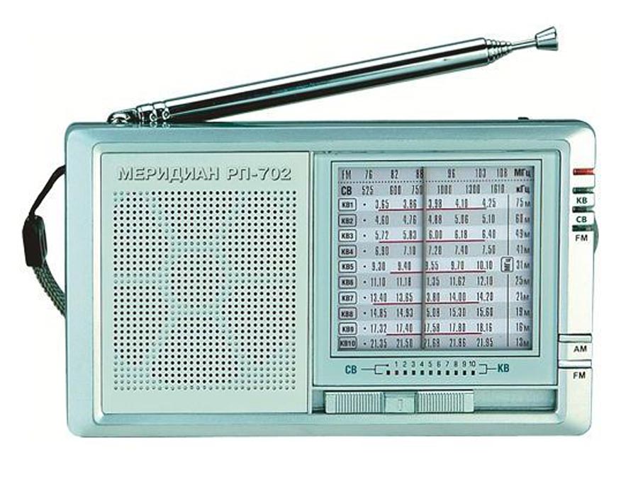 Радиоприёмник "Меридиан РП-702" выпускался в Китае и продавался в РФ с 2005 года Московским ЗАО "МИГ". Меридиан "РП-702" - переносной радиоприёмник, приём FM, УКВ, СВ, КВ, элементы питания 2xAA, масса 0.2 кг