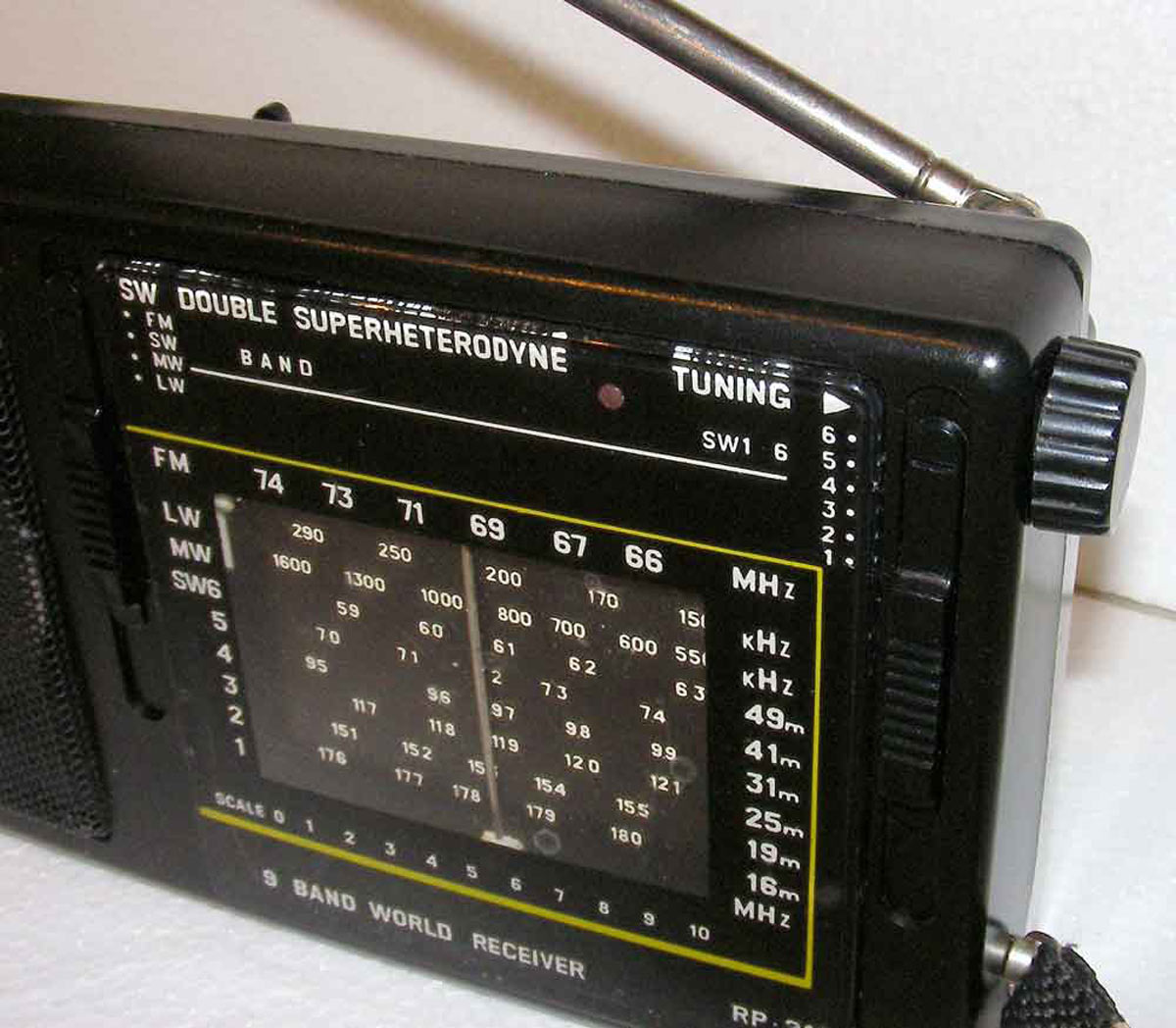 Приёмник работает в диапазонах ДВ, СВ, КВ поддиапазонах 16, 19, 25, 31,