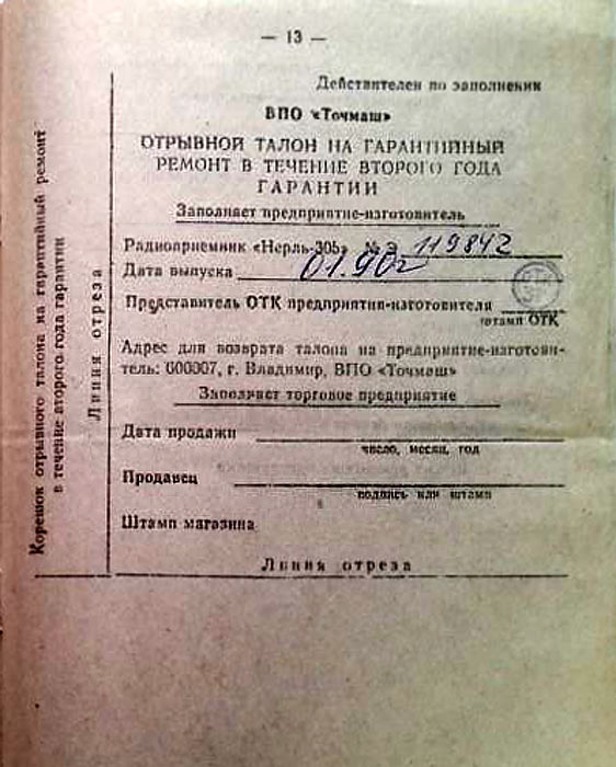 радиоприёмник "Нерль РП-305" с 1987 года выпускало Владимирское ПО "ТочМаш".