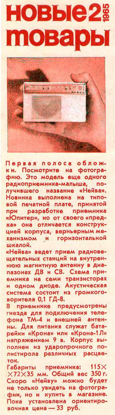 завод. Радиоприёмник ''Нейва'' представляет собой супергетеродин на семи