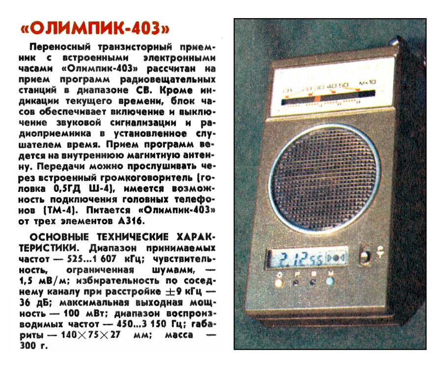радиоприёмник "Олимпик-403" в 1986 году небольшой опытной серией выпустил
