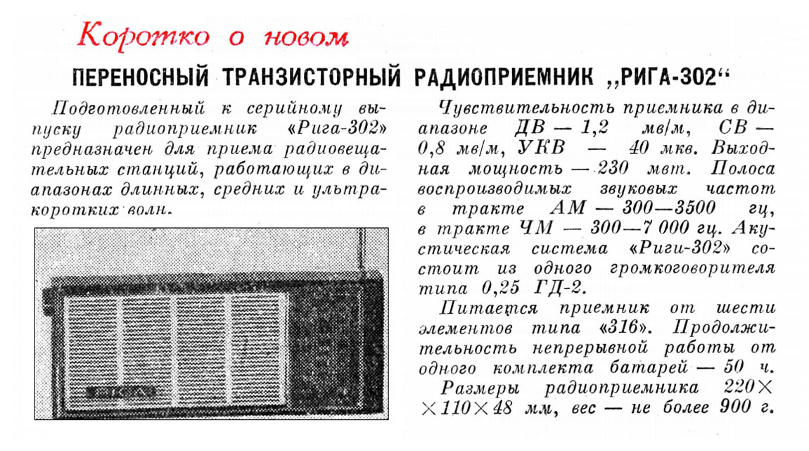 с наименованием "Рига-302Б". В 1971 году радиоприёмники подверглись модернизации,
