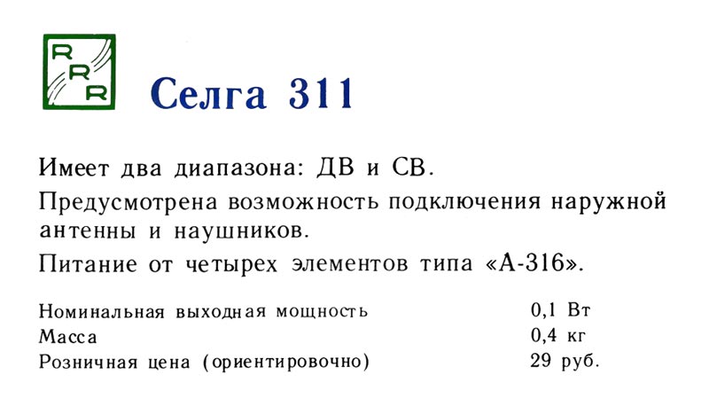 Малогабаритный радиоприёмник "Селга-311" в 1983 году разработан в КБ Рижского ПО "Радиотехника". Серийно не выпускался. Любопытно, как менялась цена от проектной до розничной.