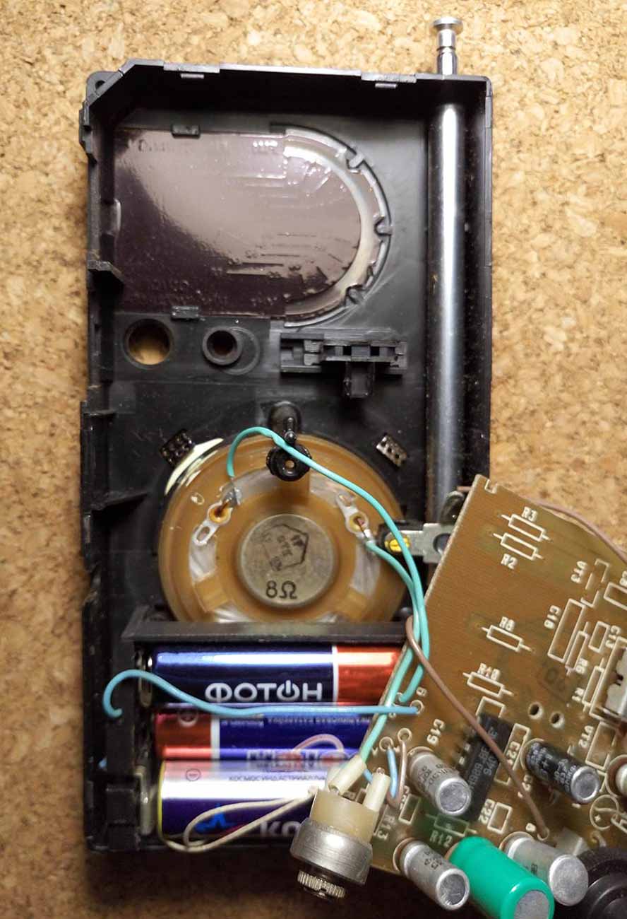 Приём ведется на телескопическую антенну. Продолжительность работы приёмника
