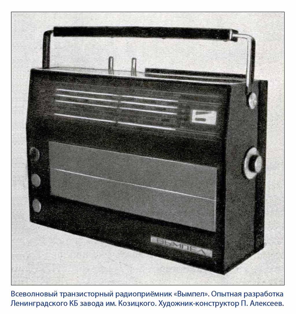 Всеволновый носимый радиоприёмник "Вымпел" разработан в 1965 году КБ Ленинградского завода имени Козицкого. Информация из журнала "Техническая эстетика" № 6 за 1965 год.