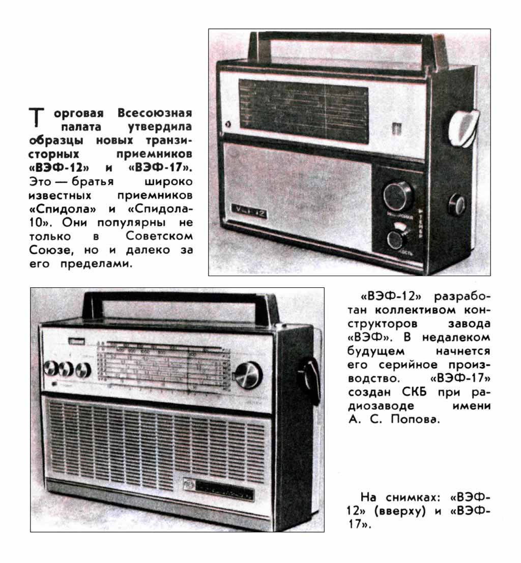 известных радиоприёмников ''ВЭФ-Спидола'' и ''ВЭФ Спидола-10''. Эти радиоприёмники