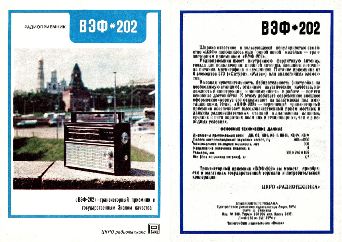завод "ВЭФ". Радиоприёмник "ВЭФ-202" создан на основе серийной модели ''ВЭФ-201''