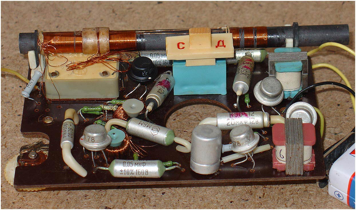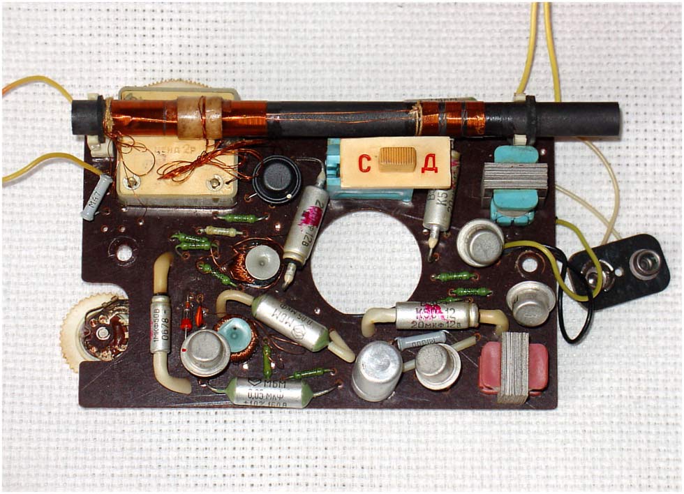 на пяти германиевых транзисторах и работает в диапазонах ДВ и СВ. Чувствительность