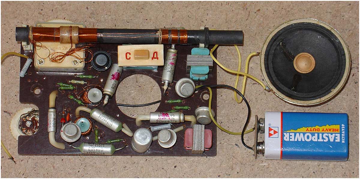 ''Марс''. Радиоприёмник ''Малыш'' собран по схеме прямого усиления "2-V-2"