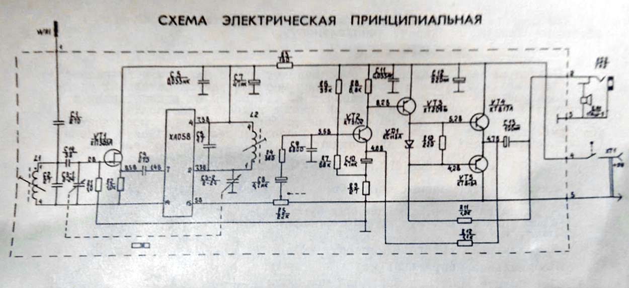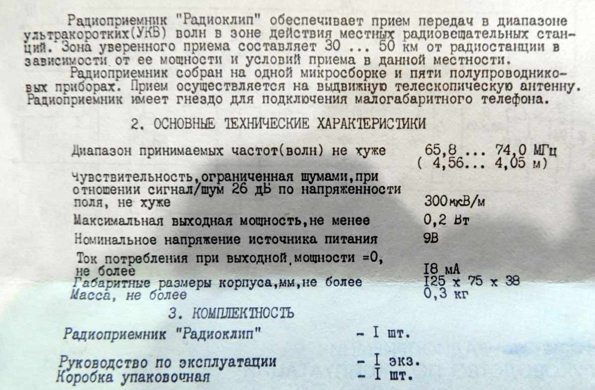 выходная мощность не менее 200 мВт. Напряжение питания 9 В. Габариты радиоприёмника