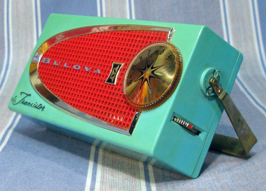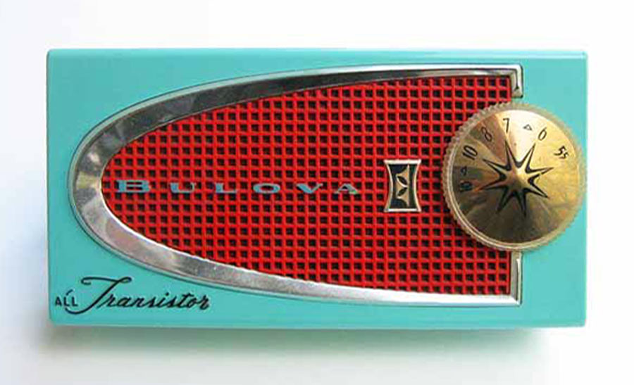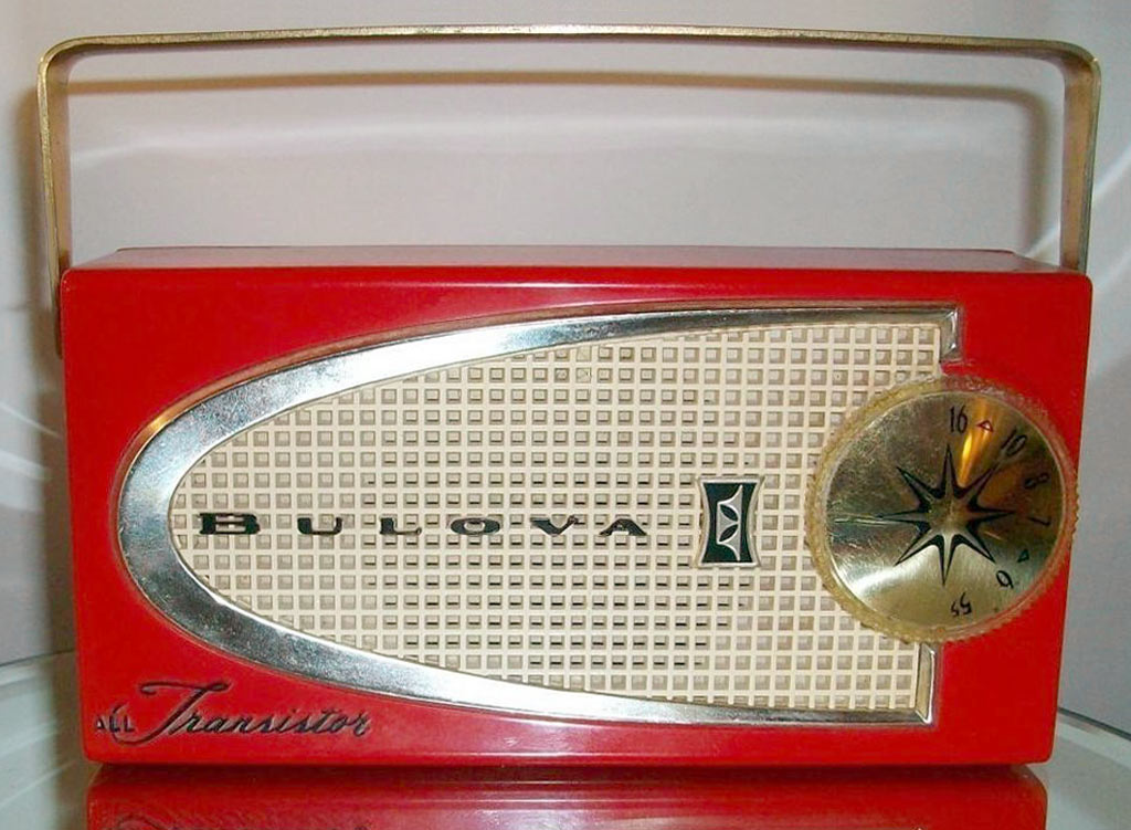 "Bulova Watch", Нью-Йорк, США. Супергетеродинная схема на 7-ми транзисторах.
