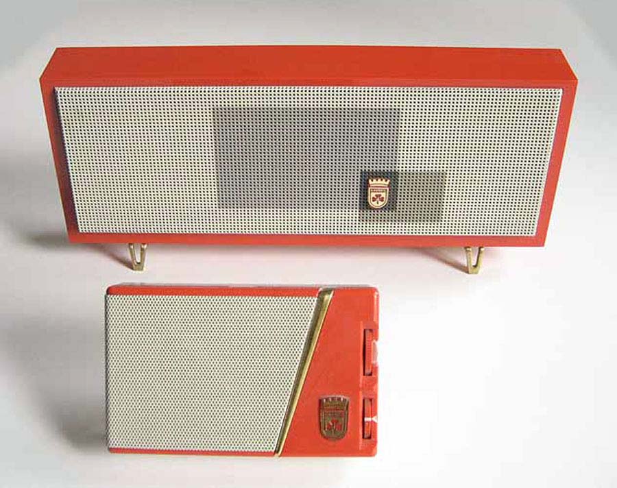 предлагался громкоговоритель в футляре, простой или с часами.