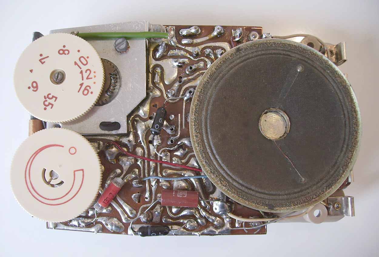 4 элемента АА. Диаметр громкоговорителя 7 см. Габариты приёмника - 145x90x42