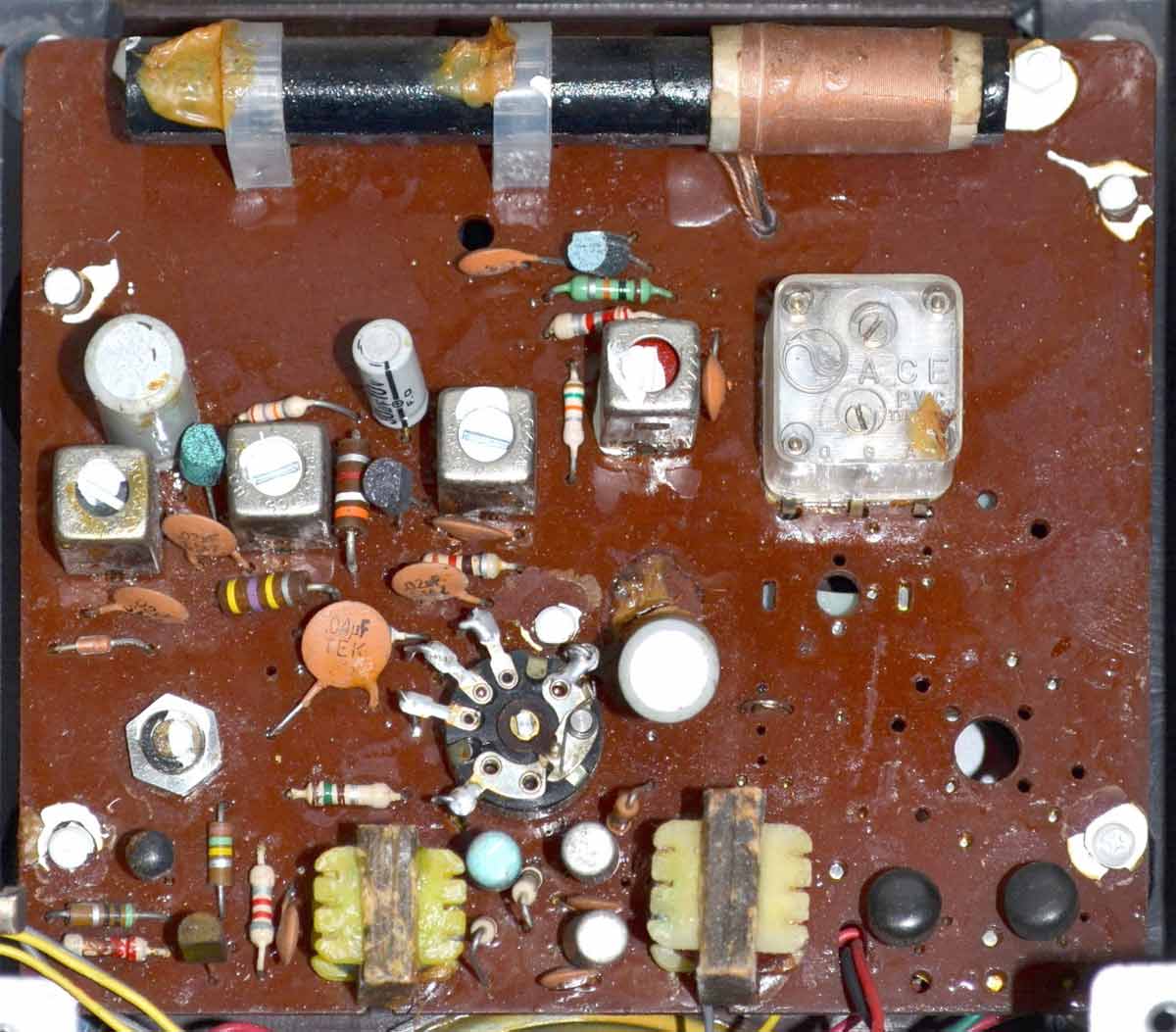 Диапазон - СВ. Питание от трёх батей "D" или от сети 220 вольт. Громкоговоритель