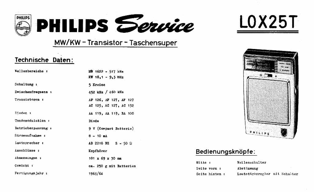 L0X25T/22G" выпускался с 1963 года корпорацией "Philips", Голландия. Супергетеродин.